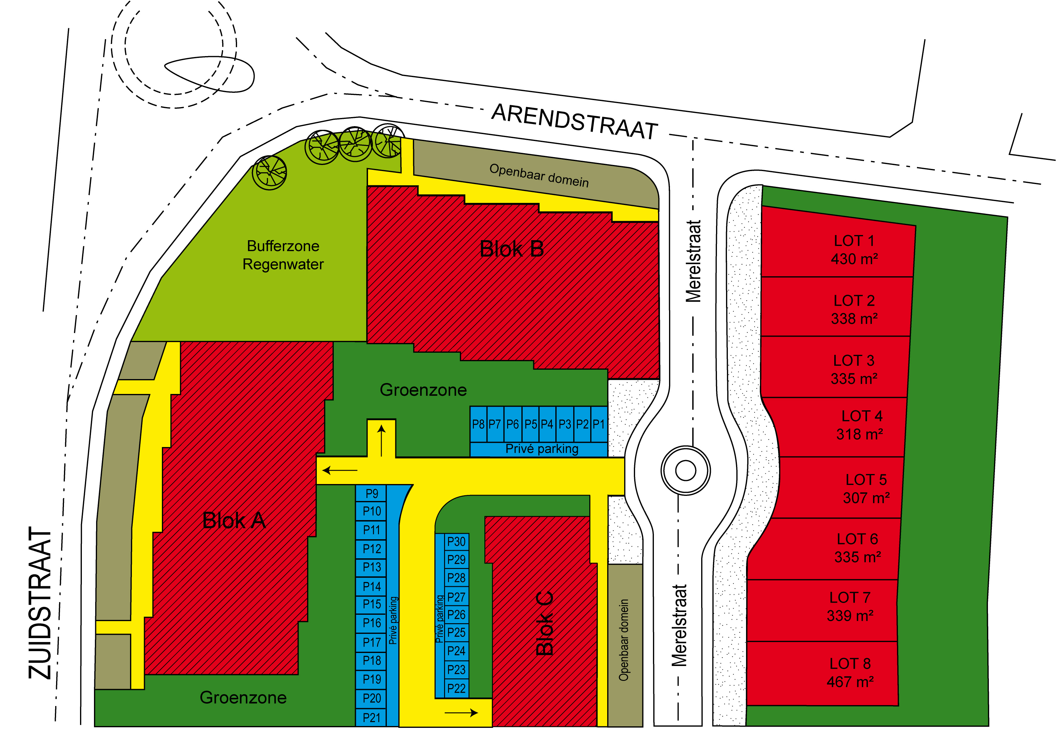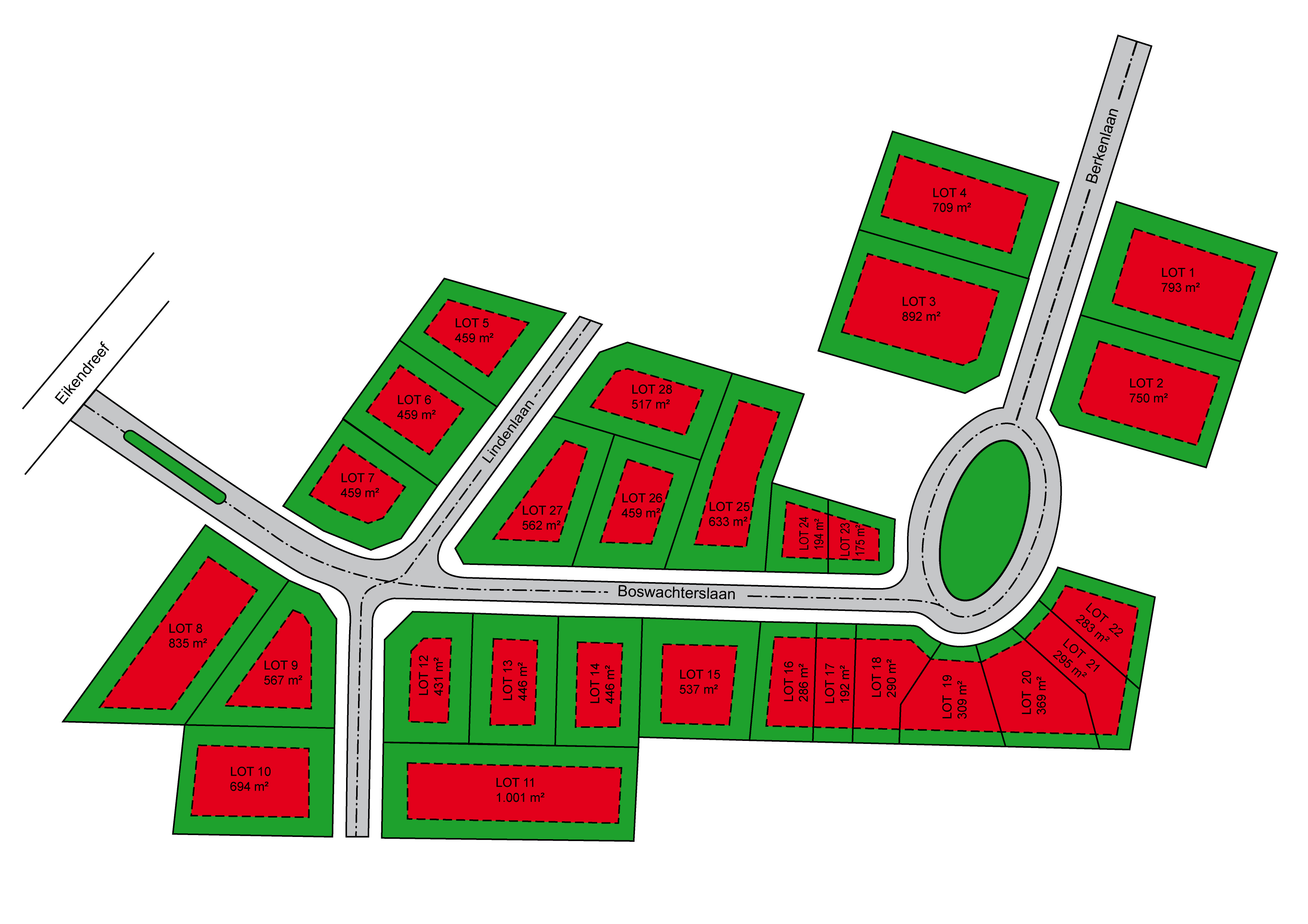 verkaveling voor 27 loten bouwgrond.