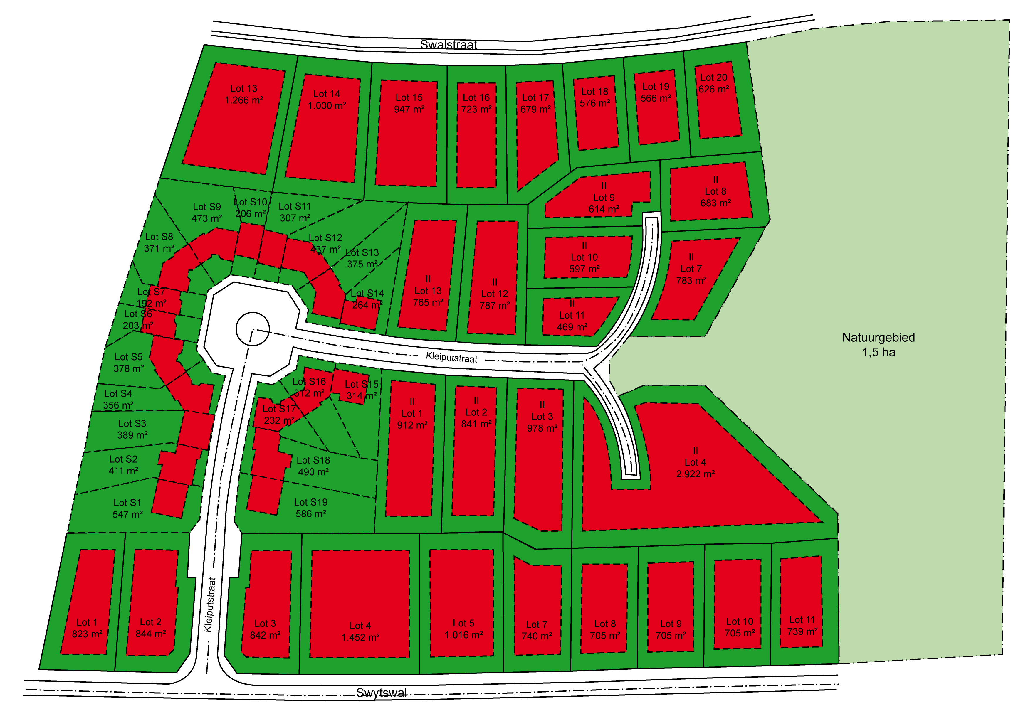 verkaveling voor 48 loten bouwgrond.